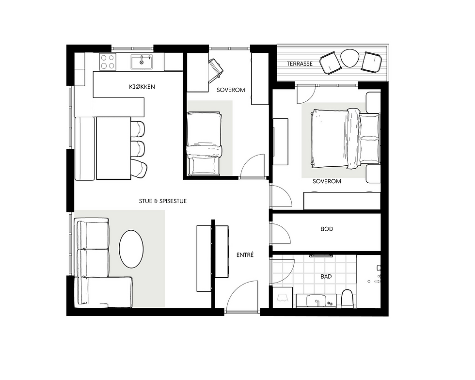 slik at plantegningen kan tilpasses bolig og markedsføring.